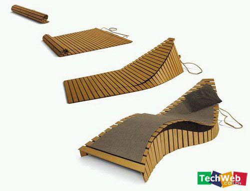 這沙發(fā)絕對現(xiàn)代??烧郫B的竹片沙發(fā),平時可以當作床墊使用,拿到地上按照圖中所示折疊,就變成了一張超舒服的沙發(fā)。