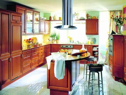 無論是寬敞還是狹窄的廚房,每個(gè)家庭都會(huì)根據(jù)空間的特點(diǎn)來放置各種結(jié)構(gòu)的櫥柜,或是寬敞空間的島形操作區(qū),或是狹長(zhǎng)空間用的L形操作區(qū),或是方正空間常用的U形操作區(qū),更有具有分隔空間功能的T形操作區(qū)。只要巧借不同的區(qū)域,將不起眼的空間加以利用,就能毫不費(fèi)力地開辟出擺放餐桌的位置。
