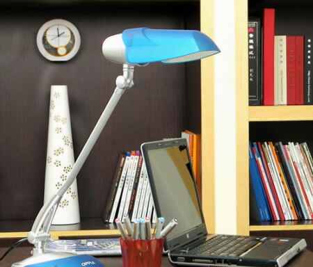 書寫臺(tái)燈的燈罩一般多為不透光或半透光,以使光亮下照集中。其光度與人的視線距離都有規(guī)定,一般相距30厘米~45厘米,燈光與視線形成45度夾角。