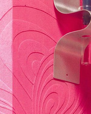 刷漆壁紙分為木屑型和軋花型兩種,愛爾福特是最先引進德國這種刷漆壁紙的公司,國內品牌還沒有。這個品牌中的木屑型系列有一種粗糙豪放的質感,內含的木顆粒結構還有超強的吸音功效,適合鋪貼在臥室和老人房。而軋花型刷漆壁紙是由特殊的紙漿、紡織纖維通過印紋工藝壓制而成的,有一種浮雕般的感覺,還有良好的透氣性。這種壁紙的價格為每平方米60元左右,但是加上涂料的消耗成本,就要達到每平方米100元以上了,比單鋪普通壁紙或單刷涂料的成本都要高。