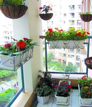 在陽臺上種花栽草也要有巧妙的搭配,否則其效果就會像野草一樣雜亂無章。陽臺的花草園地,既要便于澆水和管理,又要使各種花卉都能充分吸收到陽光?;ú莸姆胖靡灿性E竅,通常有鑲嵌式、垂掛式、階梯式和自然式四種。“鑲嵌式”一般用在已經(jīng)裝修而且面積較小的陽臺上,利用墻壁鑲嵌特制的半邊花瓶式花盆,然后栽種觀葉植物?!按箳焓健笔怯眯∏删碌娜萜髟苑N吊蘭等小型植物,然后懸掛在陽臺頂板上。也可栽植藤蔓或其他有纏繞能力的觀葉植物懸掛在陽臺外?!半A梯式”是在陽臺內(nèi)搭起階梯,進行立體盆花布置,一般的植物都可利用這種形式栽培。“自然式”利用陽臺外的盆架栽種一些木本藤蔓植物,使植物自然下垂,形成一種自然景觀。