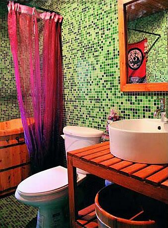 目前,多用于高科技光學(xué)和電子領(lǐng)域的鍍膜鏡也成為裝飾材料了。其獨(dú)特的鍍膜鏡面,吸光率達(dá)50%,不反光,視覺效果好,裝飾性強(qiáng)。運(yùn)用在浴室內(nèi),即使是射燈,經(jīng)鍍膜鏡反光后也會(huì)變得毫不刺眼,營造出來的朦朧氛圍,非常適合衛(wèi)浴風(fēng)格。此外,造價(jià)比較低的綠玻璃裝飾的衛(wèi)浴間,透明性更強(qiáng),挑戰(zhàn)個(gè)人情趣極限,前衛(wèi)的客戶非常喜歡。
