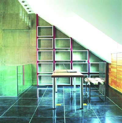 提到閣樓,人們往往會聯(lián)想到“安寧”、“寂靜”之類的詞語,而這些詞又恰好是書房必備要素之一。所以,把閣樓布置成“空中書房”也是非常合適的。在閣樓傾斜的窗戶下放一張整潔的書桌,再在墻邊擺一排造型簡潔的書柜。當你看累了電腦屏幕上的文字、數(shù)據(jù),抬起頭來,就可以透過玻璃,輕易瞭望到遠處的風景。