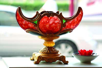 秀色可餐,用在餐具上是再合適不過了,有些餐具本身就是很好的裝飾物。五顏六色的碗,晶瑩剔透的杯,讓人愛不釋手。目前,市面上比較流行骨瓷餐具,潔白無瑕的盤子上有手描的荷花、菊花,似乎也讓人聞到了花香,就著花香吃飯真是一種享受。素凈的桌布,配以白色的野花也好,一束嬌艷欲滴的紅玫瑰也罷,或是最簡單的一盆綠色植物,都能表達出主人對于生活的贊美。鮮花可以插在玲瓏的玻璃瓶中,在陽光的折射下水滴顯得分外晶瑩;如果喜歡簡潔的現(xiàn)代風格,曲線完美的磨砂瓶應該是不錯的選擇。
