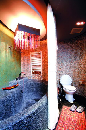 看到自然如摩洛哥浴的浴缸設(shè)計(jì)了吧?它可是從市場(chǎng)上買不來的。據(jù)曾經(jīng)在里面泡過澡的人說,泡在這種材料里會(huì)有點(diǎn)兒親近自然的感覺,不過肌膚不會(huì)感覺到磨人;淋浴的時(shí)候更合適,絕對(duì)不會(huì)出現(xiàn)由于底面太滑而摔倒的事情了。米粒石原本是用在戶外的地面的,但是在自筑的浴缸上使用也未嘗不可,而且材料的應(yīng)用延伸到浴缸外的墻與地,會(huì)感覺更酷。米粒石的售價(jià)在150元~300元/平米,加上其他材料和工序,1.8米的浴缸大約需要3500元。