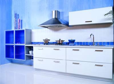 櫥柜:柜體的白色和藍(lán)色組合可以顯出深沉和大氣。墻面也可以用漸變的藍(lán)展示海水的顏色。