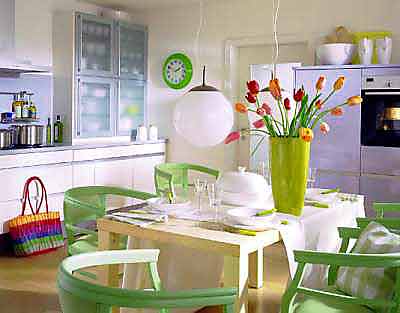 吊燈的組合形式多樣,單盞、三個一排、多個小燈嵌在玻璃板上的,還有由多個燈球排列而成的,體積大小各異。在選擇餐廳吊燈時,就要根據(jù)餐桌的尺寸來確定燈具的大小。餐桌較長,宜選用一排由多個小吊燈組成的款式,而且每個小燈分別由開關控制,這樣就可以依用餐需要開啟相應的吊燈盞數(shù)了。如果是折疊式餐桌,那就可以選擇可伸縮的不銹鋼圓形吊燈來隨時依需要擴大光照空間。而單盞吊燈或風鈴形的吊燈就比較適合與方形餐桌或圓形餐桌搭配了。
