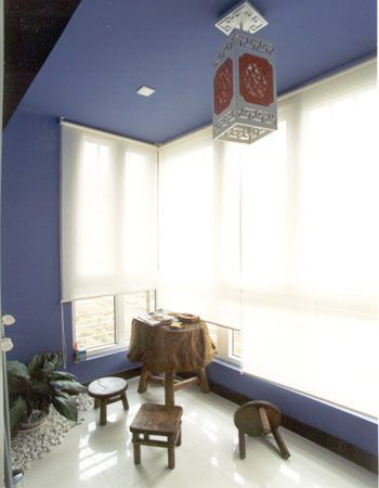 (4)陽臺的吊頂有多種做法。葡萄架吊頂、彩繪玻璃吊頂、裝飾假梁等等。陽臺的面積較小時,可以不用吊頂,以免產(chǎn)生向下的壓迫感。