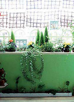 在陽(yáng)臺(tái)上種花栽草也要有巧妙的搭配,否則其效果就會(huì)像野草一樣雜亂無(wú)章。陽(yáng)臺(tái)的花草園地,既要便于澆水和管理,又要使各種花卉都能充分吸收到陽(yáng)光?;ú莸姆胖靡灿性E竅,通常有鑲嵌式、垂掛式、階梯式和自然式四種?!拌偳妒健币话阌迷谝呀?jīng)裝修而且面積較小的陽(yáng)臺(tái)上,利用墻壁鑲嵌特制的半邊花瓶式花盆,然后栽種觀葉植物。“垂掛式”是用小巧精致的容器栽種吊蘭等小型植物,然后懸掛在陽(yáng)臺(tái)頂板上。也可栽植藤蔓或其他有纏繞能力的觀葉植物懸掛在陽(yáng)臺(tái)外。“階梯式”是在陽(yáng)臺(tái)內(nèi)搭起階梯,進(jìn)行立體盆花布置,一般的植物都可利用這種形式栽培。“自然式”利用陽(yáng)臺(tái)外的盆架栽種一些木本藤蔓植物,使植物自然下垂,形成一種自然景觀。