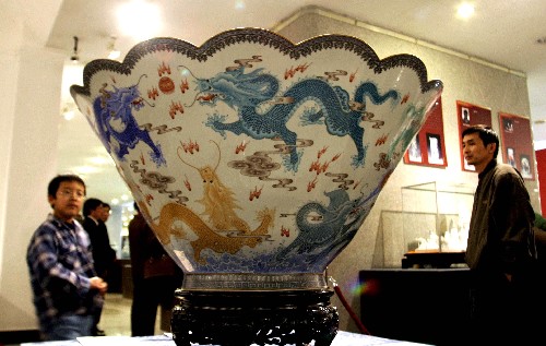 “瓷器真正意義上的年款官窯記載要從明代開始算起。”荊治中指出,明代官窯成立于洪武35年,明惠帝命設(shè)立御窯廠,而官窯所生產(chǎn)的瓷器上冠以皇帝年號,成為“永樂窯”,也就是說從明代的永樂朝開始,在瓷器上書寫帝王的年號款,并且均為四字篆書?!斑@點(diǎn)成為鑒定明代瓷器的一個(gè)小常識。在我國的陶瓷工藝歷史上,永樂瓷器的鮮紅釉、甜白釉和青花瓷獨(dú)樹一幟,占有特殊地位,成為明清兩代的典型?!鼻G治中介紹到,永樂瓷造型清芳、圓潤、靈巧,釉面肥厚,無橘皮紋,臼釉器的口、底、邊角與釉薄處多為白色或黃色。而此時(shí)的青花瓷,由于使用的是進(jìn)口的“蘇尼勃青料”,燒造時(shí)會出現(xiàn)自然的暈散,形成濃重的結(jié)晶斑點(diǎn),成凹凸不平狀?!疤貏e值得一提的是,此時(shí)圓器中的口沿,用手試之,有鋒利感,而后仿的口沿多圓潤,不見棱角。這種器口的特點(diǎn),成為收藏者斷定年代、區(qū)分真?zhèn)蔚闹饕罁?jù)之一?!?/P>