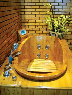 如果真的追求古人沐浴的感覺,這款圓木桶應(yīng)該是最好的選擇,跟在電視上看到的模樣幾乎一樣,只是感覺用材更優(yōu)良,不必?fù)?dān)心發(fā)霉,而且還加了個小梯子,更顯人性化。要不這么高的木桶,還真該考慮要怎么走進(jìn)去。在木桶里灑上些花瓣,就和想象中的古人沐浴更加接近了;如果覺得那還不夠愜意,盡可以倒些牛奶、啤酒進(jìn)去,古今結(jié)合,定能洗出一身好皮膚。