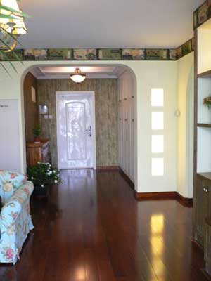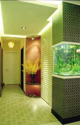 羅樹聰介紹,玄關(guān)通常與客廳或餐廳相連,但與廳的功能有區(qū)別,所以要通過裝飾設(shè)計進行功能分區(qū)。通常采用的方法主要是吊頂、墻面裝飾、地面的材料和色彩等區(qū)分或用門套、掛落、屏風(fēng)、柜子等隔斷。玄關(guān)可以是一個封閉、半封閉或全開放的空間,與廳的關(guān)系是連而不直達、隔而不斷。