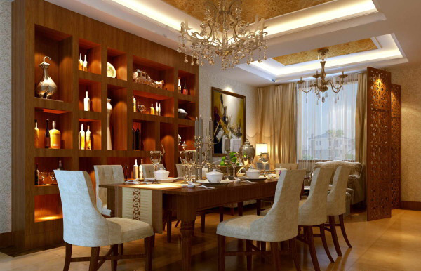 雕花的餐椅,用陶瓷裝飾的展示柜,處處體現(xiàn)新古典風(fēng)格