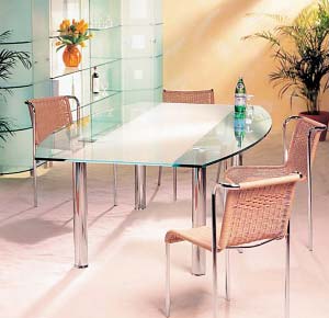 使用貼士:目前市場上的玻璃餐桌多時鋼化玻璃材質(zhì),雖然堅硬耐溫,但必須仔細挑選合格和強度高的強化玻璃餐桌,以免熱物引起桌面爆裂,尤其是有幼兒的家庭盡量不要選擇玻璃餐桌。
