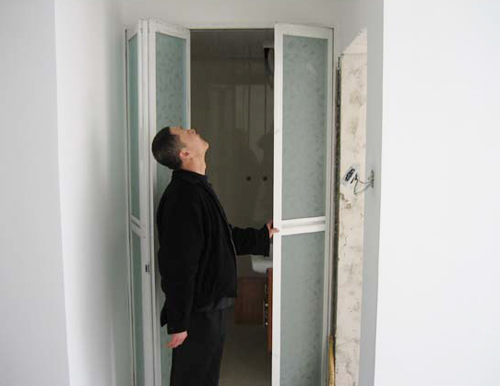 監(jiān)理正在對(duì)門(mén)的安裝進(jìn)行檢測(cè)