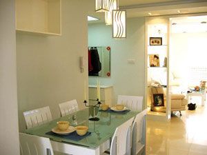將燈光與周邊環(huán)境和諧搭配是配飾設(shè)計(jì)師要考慮的重點(diǎn)問題。在這個(gè)有著60年代新懷舊風(fēng)格的書房中,高挑的落地書柜,仿佛一堵透明的墻,將水晶吊燈投注的光束折射過來,整個(gè)書房被映照的格外明亮。隱匿于書柜中的低能燈泡散發(fā)出柔和的光輝,使書房顯得更加舒適與溫馨。當(dāng)臥室一角的光線透過書柜傾瀉進(jìn)來,書房的一切都隨之通透起來。奢華的水晶燈在玻璃書柜的映襯下光芒四溢。
