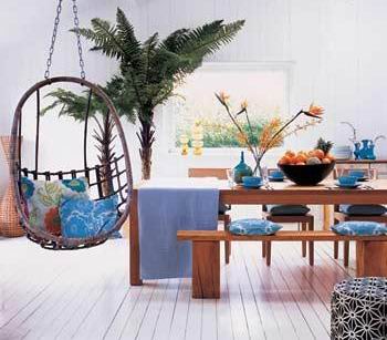 選擇一些簡單的家具和飾物,既適用于室內裝飾,又適合于戶外布置,讓我們動手來創(chuàng)造一個優(yōu)雅的休閑空間,讓室內與室外渾然一體,和諧如一!色彩明亮的裝飾墻、簡潔大方的紡織品、觸摸歷史的古董飾品、溫室種植的熱帶植物,讓家居流露出一種異國情調。