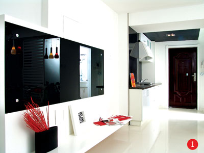 ★用?;u、烤漆玻璃增強(qiáng)反光效果。廚房、衛(wèi)生間的墻面用?;u比亞光磚反射效果更好,視覺上使空間變大。設(shè)計(jì)師利用這個(gè)原理用黑色烤漆玻璃做電視背景墻。局部黑色及烤漆的反光都會(huì)使空間變大。