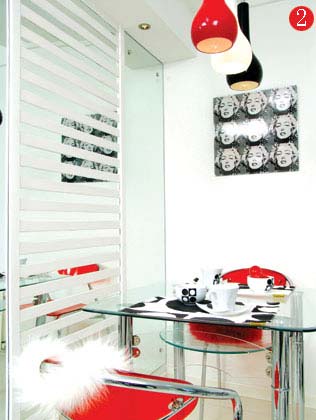 ★利用鏡子。鏡子具有視覺'欺騙'的作用,能增強(qiáng)居室的燈光亮度,讓你在視覺上覺得空間增大。餐廳背景墻鏡片和石膏板抽條結(jié)合,既可用作試衣鏡,又可作裝飾背景墻,同時(shí)還增大視覺空間。