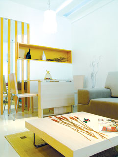 在完全敞開的小戶型空間里如何區(qū)隔睡覺、休閑、洗浴、就餐、做飯等功能?理想狀態(tài)是沒有視覺障礙,整個(gè)空間連成一體同時(shí)又各有分工。