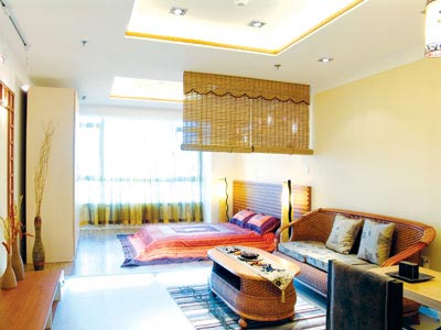 要善于選購一些多功能家具,比如楓木系列樣板間的折疊式餐桌可解決多人用餐,黑白灰系列可折疊的沙發(fā)可供客人睡覺使用,還有韓式空間樣板間的餐桌,其實(shí)是賣場(chǎng)里的一個(gè)玄關(guān)臺(tái),在這里當(dāng)餐桌卻最恰當(dāng)不過。