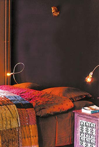 床兩邊放置款式不同的臺燈,一只燈一副面孔。