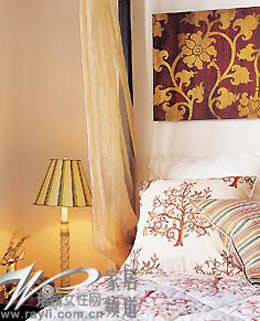 1、用泰國(guó)花紋布料制作的床頭裝飾畫,與床上用品的花色完美搭配在一起,風(fēng)格鮮明。而這種濃郁的泰式風(fēng)情,恰恰反映出主人對(duì)泰國(guó)生活的眷戀。