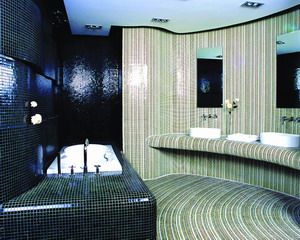 除了馬賽克的花色選擇和風(fēng)格拼貼以外,還不能忽視馬賽克與地面、衛(wèi)浴用品及飾品的和諧搭配。一般來說,深色馬賽克的浴室空間內(nèi)應(yīng)搭配輕松、明快顏色的衛(wèi)浴用品。比如可以搭配白色衛(wèi)浴產(chǎn)品,飾品的色彩可以相對跳躍一些,這樣能夠增加室內(nèi)活潑、靈動的氣氛。