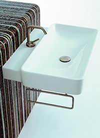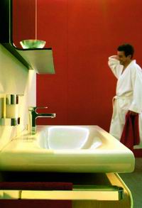 客衛(wèi)的功用不僅僅局限于方便客人,在大部分沒有客人的時(shí)間里,客衛(wèi)的儲(chǔ)物功能就凸現(xiàn)出來,暫時(shí)不用的清潔用品完全可以放在客衛(wèi)的浴室柜中。勞芬的Gallery浴室柜很寬大,金屬支腳的設(shè)計(jì)可以保證不會(huì)受到潮氣的侵襲,暖色調(diào)的門板也能給客人帶來熱情的氛圍。