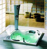 如果是兩口之家,那么鴛鴦浴是最適合在主衛(wèi)進(jìn)行的活動(dòng)。樂家艾洛Aruba雙人豪華按摩浴缸可以滿足全面的需要,占地面積并不大,是一個(gè)1.7米見方的方缸,附帶自潔功能,不至于洗澡后因?yàn)榍逑从殖鲆簧砗?,還有寬大的淋浴屏圍在缸體上方進(jìn)行干濕分區(qū)。