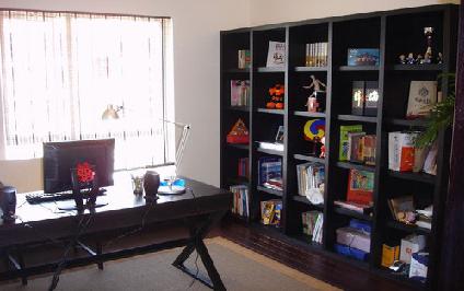裝飾主義書房的搭配其實(shí)是需要花費(fèi)很多心思的,幾個大面積的地方要強(qiáng)化出裝飾效果。花草圖案、暗啞的木紋光澤、帶有絲光的布藝和精致的工藝品,都是很好的工具。色彩不宜明亮,略帶些迷離的暗調(diào)會讓空間里彌漫著神秘的味道。