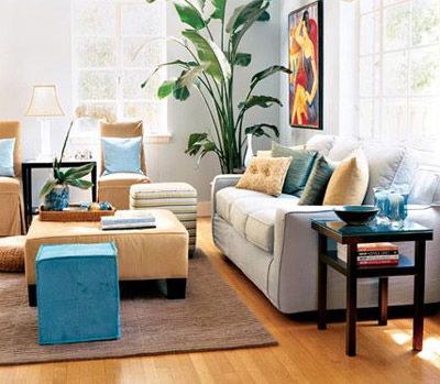 很多人喜歡在沙發(fā)范圍內(nèi)擺放一塊華麗繽紛的大地毯,既可增添美感,同時又可突出沙發(fā)在客廳中的主導(dǎo)地位。