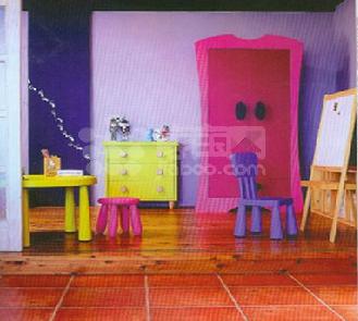 家具能兼具安全與卡通氣息最好??ㄍǘG麗的衣柜、塑料椅等家具搭配在一起,馬上就能烘托出活潑而充滿童趣的氣氛。