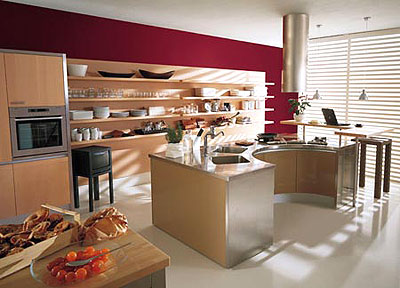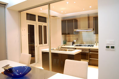 一般開放式廚房是指非封閉式的廚房隔間,也就是廚房空間與餐廳合二為一或與客廳空間相鄰而無任何門擋住的空間?,F(xiàn)在已經(jīng)有越來越多的都市新貴們將自家的小廚房改造成了寬敞明亮的開放式大廚房。開放式廚房將是未來的發(fā)展趨勢,但也有它的弱點(diǎn):首先,每日的三餐油煙,需要主婦們更加勤勞;其次,開放式的空間必然要求此廚房要與客廳的整體風(fēng)格相統(tǒng)一,否則就會(huì)產(chǎn)生整體空間的不和諧。
