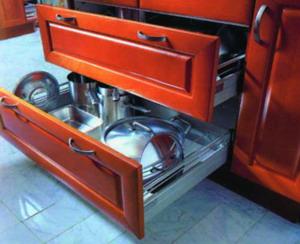 瞬間表現(xiàn):大容量的立柜由門式換成抽屜式以后,直接拉出的抽屜可以使放置其中的物品全部展現(xiàn)在視野之內(nèi),一目了然,不必像使用門式立柜那樣經(jīng)常要進(jìn)行下蹲運動,從光線不足的大柜子里摸索尋找物品了。