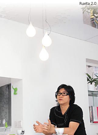 設(shè)計師何宗憲(Joey)這間以大自然為題的設(shè)計單位,四周都有意想不到的點綴和擺設(shè),雨點吊燈和天花上的波點白云即為一例。