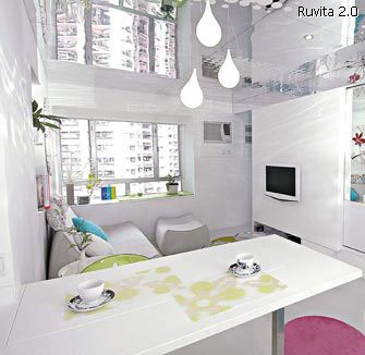 這間位于魚涌的單位,面積只有約520方尺,但在Joey的從新打造之下,這間以大自然為題的家居,放棄了采用一般人眼中的自然色:綠或啡,反而用上了簡約時尚家居常用的純白和銀色:“這單位在重新設(shè)計之前,本來還有1個房間位于大窗位置,廳堂自然光極少。設(shè)計時除了將近窗的房間拆去,令廳堂面積更大,引進更多天然光外,家居的主色亦以白色為主,天花及部分間隔活動墻亦用上鏡面設(shè)計,令全屋更光猛?!边B地板都用上白色,是為了使室內(nèi)看來有所延伸,起擴闊視覺空間之效。
