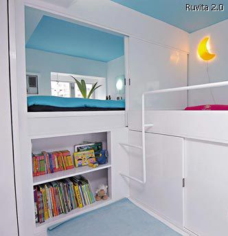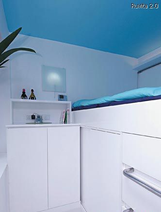 女兒睡房和主人房以趟門分隔,加高的地臺和睡床下方,有大量的儲物空間。