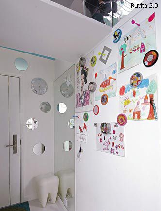 玄關(guān)的白墻是戶主女兒的作品展覽區(qū)