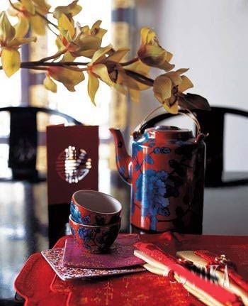 餐廳:食色雙馨 大多數(shù)居室中的餐廳都靠近客廳,所以在整體布置上,要考慮到與客廳的風(fēng)格相協(xié)調(diào),同樣物件的擺設(shè)不要過于繁雜。但餐廳的布置上可以多些濃烈的色彩,所以在婚慶氣氛中的餐廳,可大膽地多用些紅色,畢竟,鮮艷的顏色有增進食欲的效果。在具體布置上,可以適當(dāng)增加些瓷器的擺設(shè),不僅凸現(xiàn)了餐廳的就餐功能,同樣代表中國的瓷器的運用也呼應(yīng)了整個中式婚慶的家居風(fēng)格。中式餐廳中出現(xiàn)的織物不是很多,但紛繁的中式織物卻最能烘托婚慶的喜氣。所以,在餐桌上擺放各種鮮艷的中式刺繡的餐墊、杯墊,會起到畫龍點睛的效果。鮮花同樣也是布置中式婚慶餐廳的法寶,不可貪多,點到為止即可。餐桌燈的挑選不必拘泥傳統(tǒng),同一風(fēng)格不同造型的餐桌燈懸于桌上,反而倍添情趣?;ㄆ考跋灎T也不必拘泥于中式風(fēng)格,但同樣的大紅色彩融于整個中式婚慶氣氛餐廳內(nèi)不僅不顯突兀,反倒渾然一體。