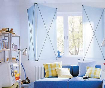 懸掛方式上,平拉式的大小隨意,平穩(wěn)勻稱,懸掛、開啟都很簡單;而吊起式可以根據(jù)光線的強(qiáng)弱而上下升降,當(dāng)陽光只照到半個(gè)窗戶時(shí),既不影響采光,又可以遮陽。這兩種式樣都比較適用于寬度小的窗戶。