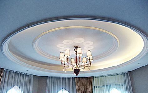 假天花為遷就屋頂?shù)臋M梁而壓得太低,無論在風水方面或設計方面均不宜。在這種情況下,可采用四邊低而中間高的假天花布置,這樣一來,不但視覺較為舒服,而且天花板中間的凹位便會形成聚水的天池,對住宅風也會大有裨益。若在這聚水的天池中央懸掛一盞金碧輝煌的水晶燈,則會有畫龍點晴之妙,但勿在天花板上裝鏡,此乃風水大忌。