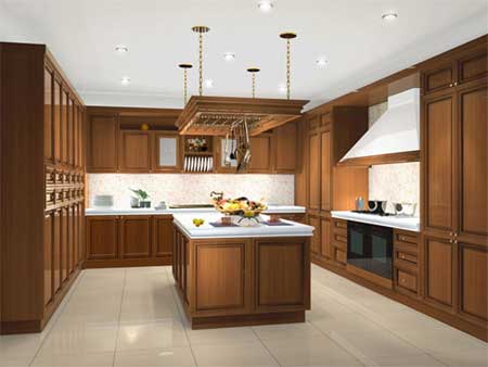 這種孤島島臺對廚房面積的要求很大。如一字形的櫥柜,島臺與櫥柜之間的距離不得小于1.2米,這就要求廚房的深度至少要超過2.4米(標(biāo)準(zhǔn)櫥柜柜體深度為0.6米);如果是L形櫥柜,則要求開放式廚房的開口部分至少為3.8米(以島臺2米長為例);如果櫥柜是U形的,則要求這個長度最少為4.4米。