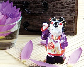 概要: 招財(cái)貓的傳說(shuō)可以追溯到四百多年前的江戶時(shí)代,可是真正出現(xiàn)陶器招財(cái)貓,卻是一百五十年前。起初是花柳界用來(lái)招呼客人的,明治時(shí)代時(shí),才普及到一般庶民之間。往昔,江戶花柳界的藝妓,別名是「貓」,藝妓的必需品三弦,又是用貓皮制成的,所以藝妓跟「貓」,關(guān)系不淺??傊?,招財(cái)貓的由來(lái),一般有四種說(shuō)法。 一、薄云的三** 江戶時(shí)代的花柳街吉原,有位名叫薄云的花魁。