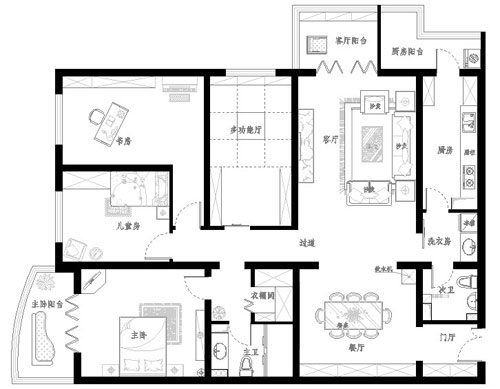 業(yè)主的設(shè)計(jì)要求是滿足居住人口的使用要求前提條件下達(dá)到舒適,自然,樸實(shí)的味道。本案戶型結(jié)構(gòu)功能明確,空間的平面布局非常合理。經(jīng)過與業(yè)主詳細(xì)的溝通,設(shè)計(jì)師認(rèn)為鄉(xiāng)村風(fēng)格所表達(dá)的舒適、輕松、樸實(shí)、自然的感覺恰好能夠滿足業(yè)主需要的生活方式,后期配飾是整個(gè)方案的重頭戲。