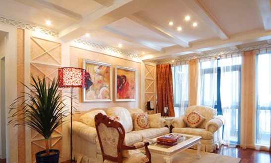昏暗的客廳宜天花板上藏日光燈;有些缺乏陽光照射的客廳,日夜皆暗不明,暮氣沉沉,久處其中便容易情緒低落,如有這樣的情況,則最好在天花板的四邊木槽中暗藏日光燈來加以彌補。光線從天花板折射出來,既不刺眼,而日光燈所發(fā)出的光線最接近太陽光,對于缺乏天然光的客廳最為適宜。并且光燈與水晶燈可并行不悖,白晝用日光燈來照明,晚間則點亮金碧煌的水晶燈。