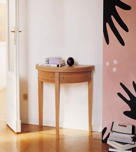 一面可大可小的鏡子可供整理妝容。如果放幾本書,丈夫等待出門前作最后準(zhǔn)備的妻子時(shí),就可以順手翻翻,消磨那段說不好是長是短的時(shí)間。而幾枝花草、幾件新穎活潑的小擺設(shè),使得整個(gè)空間轉(zhuǎn)瞬間靈動起來。