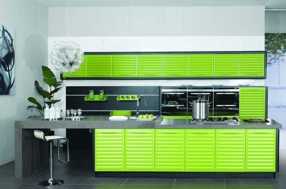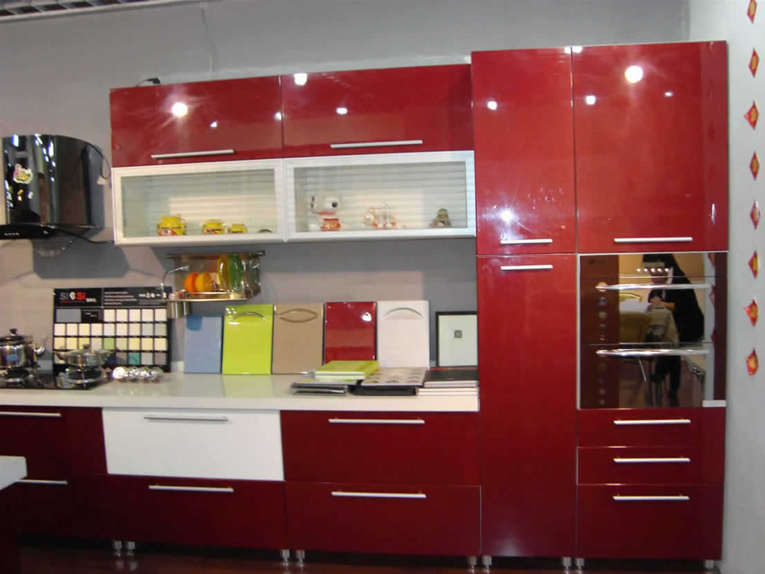 2、烤漆櫥門(mén):大多采用中密度板,進(jìn)過(guò)銑型、烤漆處理后制造而成。具有色澤鮮艷、抗污能力強(qiáng)、容易清潔等特點(diǎn)。