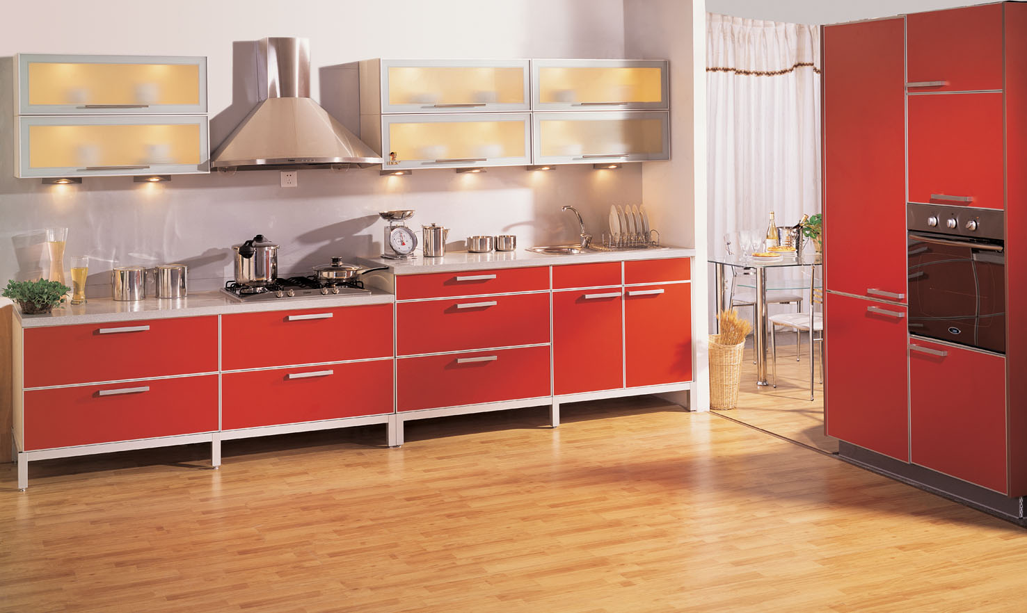 3、水晶金屬封邊櫥門(mén):大多采用刨花板、密度板或大芯板為基材,表面壓噴有油墨的亞克力飾面,四面包鋁合金邊,晶瑩剔透,顏色光鮮。