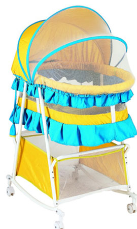 注:搖籃床的欄桿對小孩沒有什么危險(xiǎn),不會(huì)碰著、磕著他。因?yàn)樾『⑺X才搖它,如果小孩站著玩不會(huì)搖。